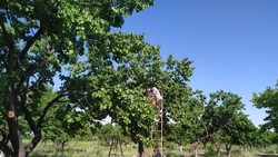 Баткенге өрүктөрдүн мөмөсүн кагып түшүрүүчү жаңы техника алынды