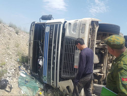 Баткенде Россиядан жүк ташып келе жаткан «КамАЗ» оодарылып кетти